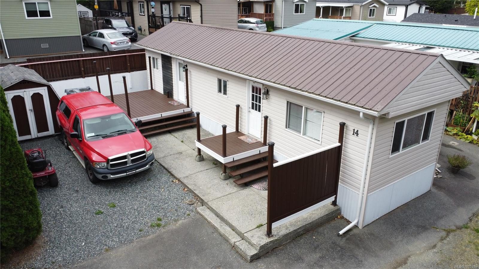 This updated 1-bedroom, 1-bath, single-wide home in Chase River Mobile Home Park offers a bright and functional 600 sq ft layout. Featuring an open floor plan with laminate and tile flooring, modern kitchen with updated cabinetry, counters, and stainless appliances, plus a dining nook with island seating. The spacious primary bedroom is complemented by a 4-piece bath with in-suite laundry. Recent updates include new paint, baseboard heaters, vinyl siding, upgraded windows and electrical upgraded with new panel and silver seal. Outside, enjoy two sun decks, a private grassy side yard, and a garden shed. Chase River Mobile Home Park is a 55+ manufactured home park. Conveniently located near shopping, transit, and highway access