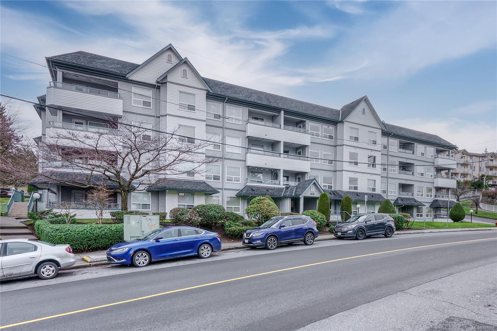 Looking for a professionally managed condo building located minutes from the hospital and all major amenities in central Nanaimo? Here it is! This updated corner unit offers 2 spacious bedrooms, 1 bathroom, a laundry room and an open concept living, dining and kitchen. To top it off, the home includes a large covered patio off the living room. This unit has updated kitchen cabinets, new appliances, and an updated bathroom. With an amazing central location within walking distance to all amenities and no age restrictions, this home is perfect for families or retirees. Rentals have restrictions, however furry friends under 10kg are welcome and parking + storage is included. All measurements are approx. and data must be verified by new buyer.
