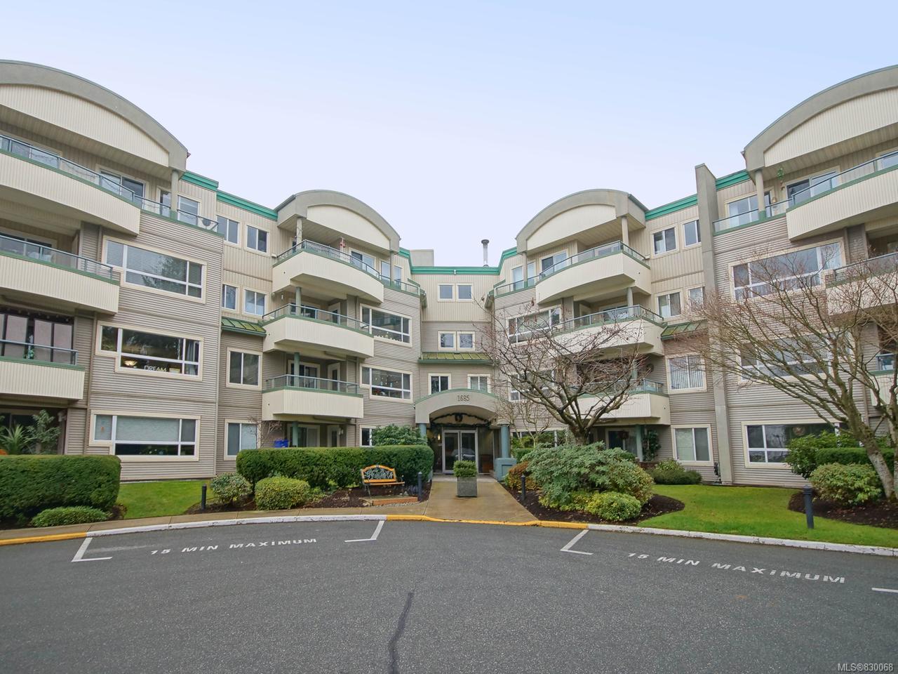 This well maintained 2 bedroom and 2 bathroom home is located next to a bus route, only minutes on foot to local shopping and professional offices and a short drive to the hospital, BC Ferries, parks, downtown, and waterfront promenade. The home is nestled safely onto the 4th floor with morning and early afternoon on the large partly covered deck. The thoughtful floor plan features a kitchen with double sink and easy pass through to the dining area; a bright living room includes a gas fireplace feature wall and slider onto the deck; two bedrooms including a master bedrooms with walk-through closet, 4 piece ensuite and laundry room; the second bedroom opens via slider onto the deck also. Laminate floors and contemporary paint colours add warmth to this comfortable home. Underground parking stall and storage locker are included. All measurement’s are approximate & should be verified if important.