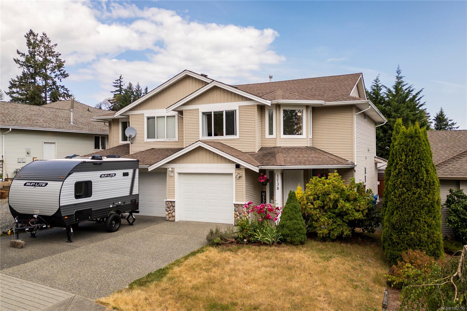 Welcome to 1738 Country Hills Dr, a beautifully maintained half duplex in the heart of Chase River’s sought-after Country Hills community. This family-friendly 3 bed, 3 bath home offers 1,660 sqft of comfortable living space, including a single garage and a large, flat backyard—perfect for pets, kids, or summer entertaining. Inside, you’re greeted by soaring 16ft ceilings in the entryway, updated flooring, and tasteful cabinetry throughout. The living room features a cozy natural gas fireplace, and the kitchen offers both style and function. The spacious primary bedroom includes a generous walk-in closet and a private ensuite. Need to get the kids out of the house? Just a stones throw down the street, you’ll find a neighborhood playground! Want to get outdoors? You’re just a 7 minutes walk to endless trails great for hikes or mountain biking! Whether you’re upsizing or buying your first home, this property checks all the boxes in one of Nanaimo’s most popular neighbourhoods.