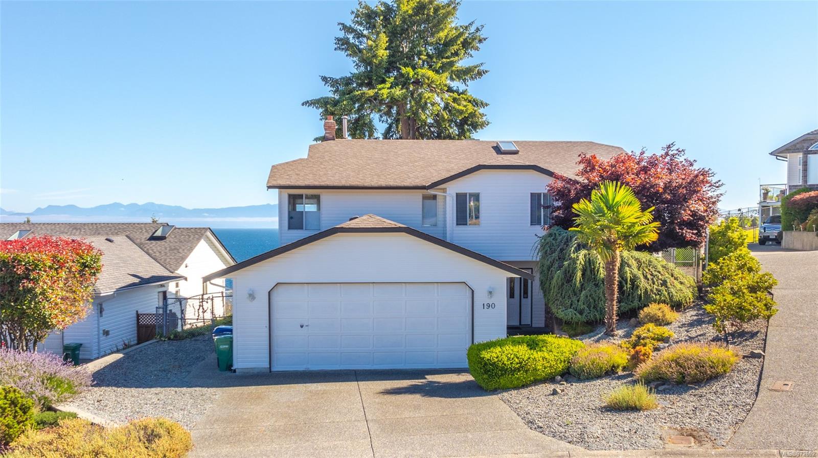 Unobstructed panoramic ocean view home in one of the most prestigious areas of North Nanaimo! This well-maintained 2,815 sqft home on a 0.20 acre lot offers breathtaking ocean and mountain views. Featuring 4 bedrooms plus a den, 3 bathrooms, a living room upstairs, and a family room downstairs. The functional kitchen, with abundant natural light and ocean views, includes a breakfast nook and formal dining room. Recent updates include fresh paint, new flooring, fixtures, and trim, as well as an approximate seven-year-old roof. Primary bedroom accesses the amazing rear deck and boasts a walk-in closet and full ensuite. The lower level hosts an additional 567 sqft of unfinished bonus space, ideal for an in-law suite, workshop, hobby area, or additional storage. 200amp electrical panel + sub panel. Located at the end of a cul-de-sac, enjoy your fully fenced, manicured, and landscaped yard. Measurements are approximate; verify if important.