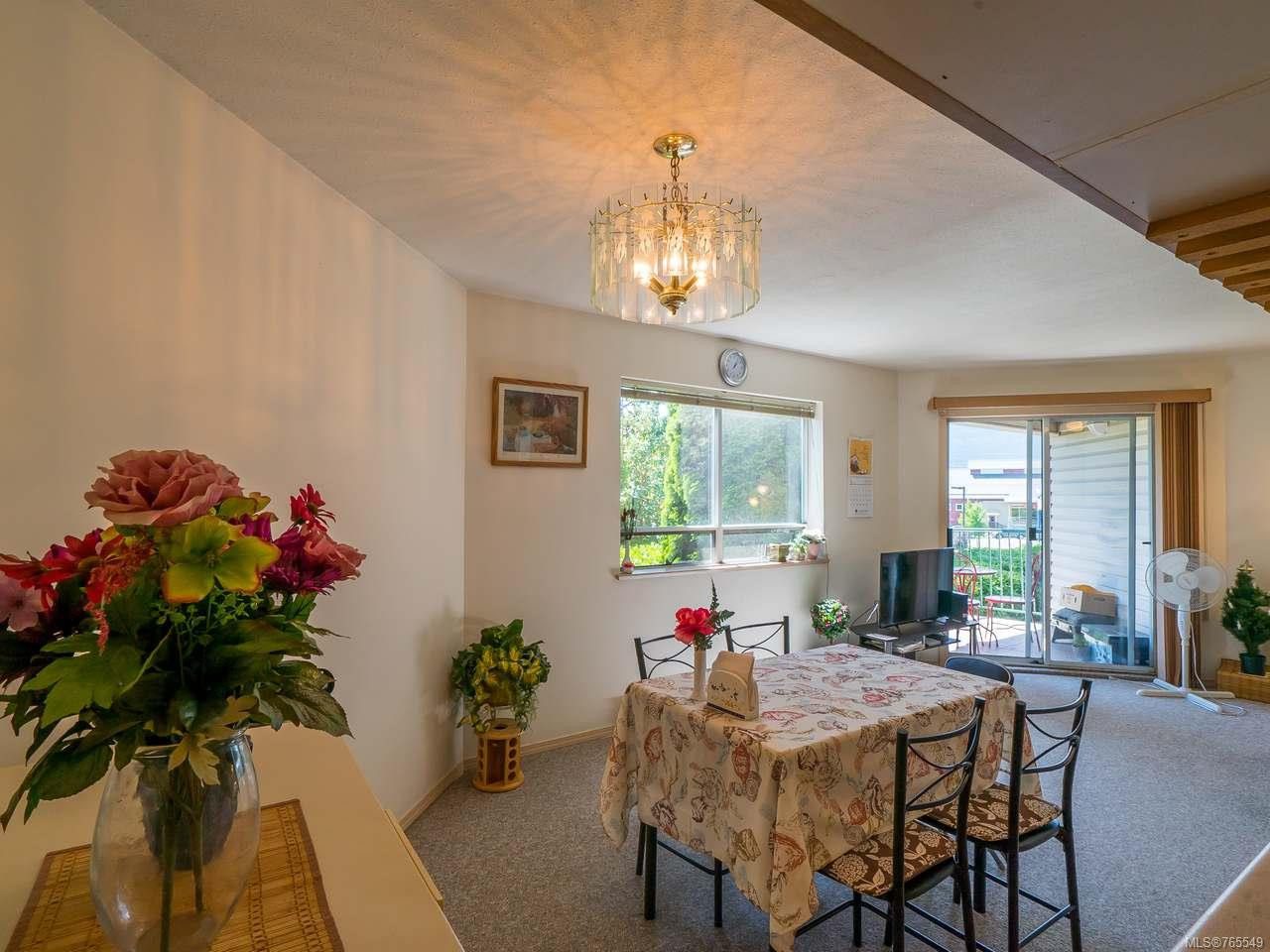 Clean & well maintained 2 bedroom condo within walking distance to all central amenities. Situated on the 2nd floor, this unit has a great lay-out. Open concept living/dining room with pass-through from the kitchen, ideal for entertaining. Functional galley style kitchen boasts an abundance of cabinets. The family chef will appreciate the long countertop & newer appliances. Deck conveniently located off the living room overlooking manicured grounds. A good sized master bedroom benefits from a spacious walk-in closet that continues through to the full bathroom, doubling as a cheater ensuite. The second bedroom is ideal for guests or a roommate. Large in-unit laundry/storage room with built in shelving. Access by exterior elevator or stairs. Both pets & rentals are permitted allowing versatility in ownership. On bus route but walkable amenities including grocery store, pharmacy, bank, Tim Hortons, The Buzz Coffee, restaurants, hospital & yoga. A condo with lifestyle! Msmts approx.