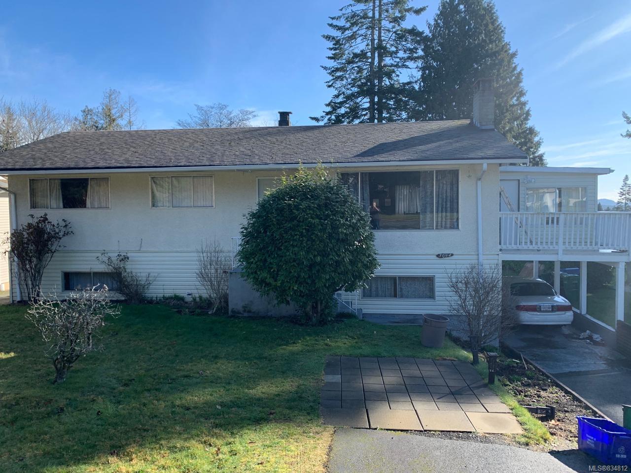 Four Bedroom two bathroom home in desirable Departure Bay area. Great family home with unauthorized in-law suite. Original Hardwood flooring throughout living area upstairs. Three generous sized bedrooms and one four piece bathroom with a newer vanity. Living room has a large picture window and brick fireplace which the Seller is currently using an electric fireplace. Basement has large laundry room/workshop area. Spacious rec room with wood burning fireplace. In-law suite with a Kitchen and additional bedroom. Parking for two vehicles with a carport and an additional paved parking space in the front yard. Large back yard that backs onto Rock City Elementary School. Roof was redone in 2012. This home just needs a little TLC.