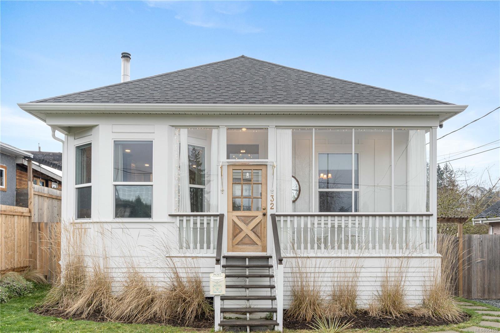 Fall in love with this immaculate & beautifully renovated character home. Adorable curb appeal & fantastic location close to shopping, restaurants, downtown, all level of schools & VIU (University). As you enter from the enclosed front porch/sun-room, soaring 10ft ceilings & twinkling chandelier greet you. Filled with South-facing light & great energy. Meticulous owners made this home a labor of love for years. Extensive list of upgrades including new roof, sheathing & gutters, windows, hardi-plank exterior, plumbing, electrical, drywall, insulation & custom cabinetry in the cheerful open-concept kitchen, primary bedroom & bathroom, claw foot tub & separate walk-in shower, built-in range, oven & super deep cast iron kitchen sink, efficient wood stove (WETT cert) & new survey. Fully fenced back yard with rolling section to laneway for vehicle/potential shop/carriage home. Basement is a useful 6ft with workshop. Covered back porch for entertaining. Must see! All measurements approximate.