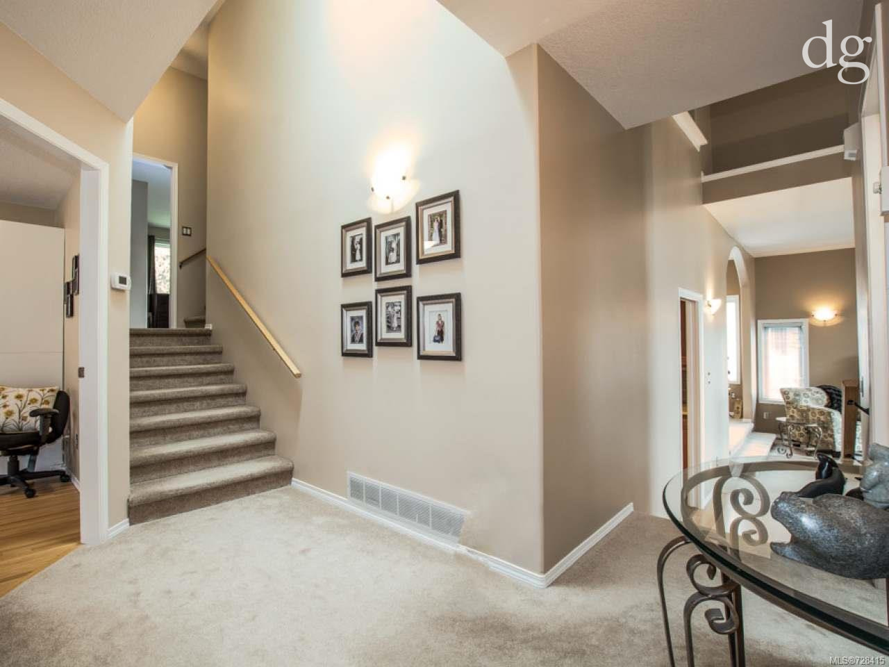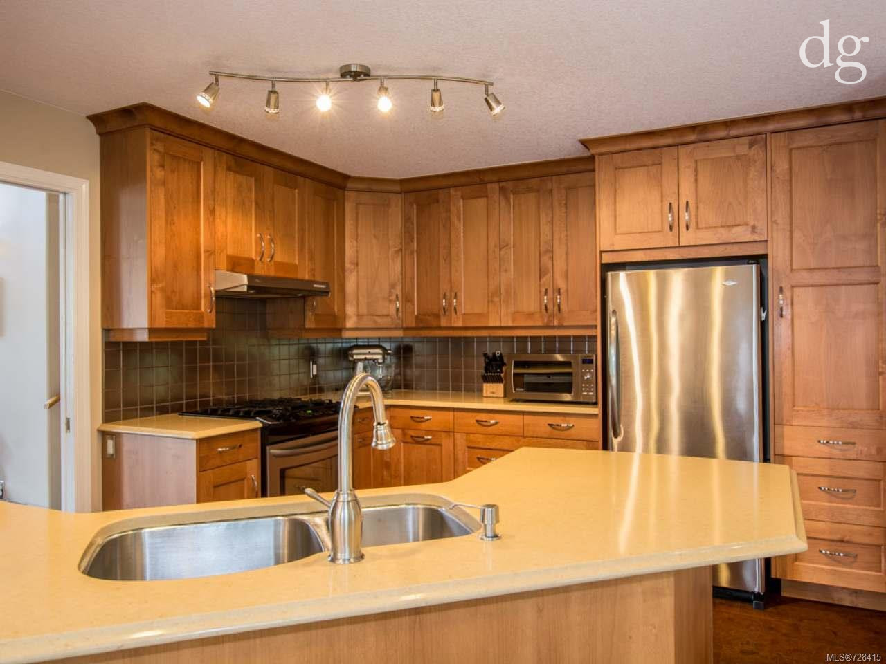 Located in the highly desirable Stephenson Point on a quiet cul-de-sac in a quiet family friendly neighbourhood. The vaulted ceilings in the entryway deliver a bright and spacious first impression, and reveal the tastefully decorated living and dining spaces. The Kitchen features custom maple cabinetry, silestone countertops, and cork flooring and a view of the family room below. There is also a balcony located off the kitchen that overlooks the beautifully manicured backyard and Planta Park, a perfect place to enjoy your morning coffee or relax with a good book. Up a half flight of stairs you will find 2 bedrooms and an updated 4 piece bathroom, and up a bit further you will enter the master suite complete with a five piece ensuite offering a walk in shower and Jetted tub. You will aslo find a den located in this top floor, tons storage with a 5″ crawl space and a multipurpose room with its own entrance. All measurements and data are approximate, please verify if important.