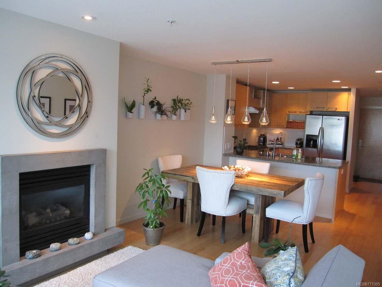 Bright mountain view condo in the Pacifica building. This unit offers a gourmet kitchen with granite counters, stainless steel appliances, with gas stove, and eating bar. The kitchen is open to the dining and living area which works well for entertaining. Throughout the living area are hardwood floors and floor to ceilings windows which allow in an abundant of natural light with a focal point being the cozy gas fireplace. The master bedroom is a good sized with walk in closet. The location of the Pacifica building is fantastic as it is just steps to many amenities such as the water front walk way, shopping, banks, marinas, theatre, library and seaplane terminal where there are regular daily flights to Vancouver. The Pacifica allows pets, rentals and has secured underground parking and storage. All measurements approximate, verify if important.