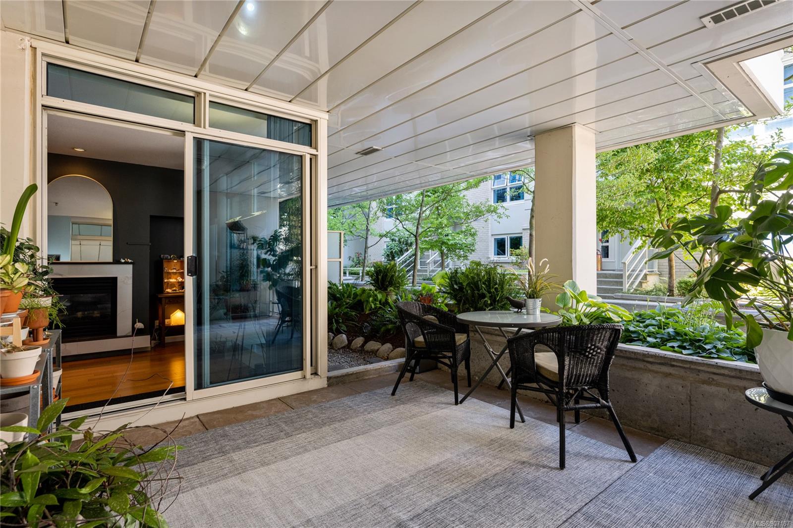 Ocean access is only several steps away in this modern oceanfront building! This spacious courtyard unit in Nanaimo’s iconic Pacifica building boasts a large, private, covered patio, and a modern layout. From the moment you enter, you are greeted with space. At just over 1,200 sq ft, this 2 bedroom, 2 bathroom condo gives you a large kitchen, a generous living room, and access to your own, private outdoor area. The spacious master bedroom comes with an ensuite, an amazing walk-in closet, and direct patio access. Gas is included in the maintenance fees and it is used for the fireplace, bbq hook-up, and stove. The unit also comes with two built-in air conditioning units in the bedroom and living room. Rentals over 30 days are unrestricted, and the building provides secure underground parking and additional storage. Pets are allowed, please see the Bylaws for more information. Own your lifestyle – step into this amazing property with the superb access to Nanaimo’s spectacular waterfront.