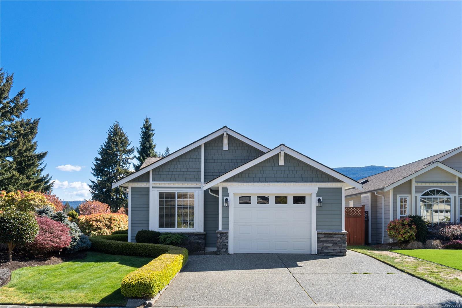 Welcome to Deerwood Estates, Nanaimo’s Premier Gated Community of manufactured homes. This home is move in ready and features an awesome floor plan that includes many updates such as interior/exterior painting and flooring. The exterior is high quality cement fibre siding (Hardi Board) and includes a double wide driveway, garage with remote opener, sunny side patio with roll out awning and beautifully landscaped fully fenced yard. The 1353 sq ft floor plan features a generous sized primary room with ensuite, living room with gas fireplace, separate dining room that could easily be a den, dining area next to the spacious kitchen, laundry room, main bath and another spacious bedroom. Conveniently located close to the gated entrance and guest parking make this an ideal location within the community. If you are looking for a quality home and community that presents pride of ownership, then Deerwood Estates is the place for you. Great value with a quick possession makes this home a winner!