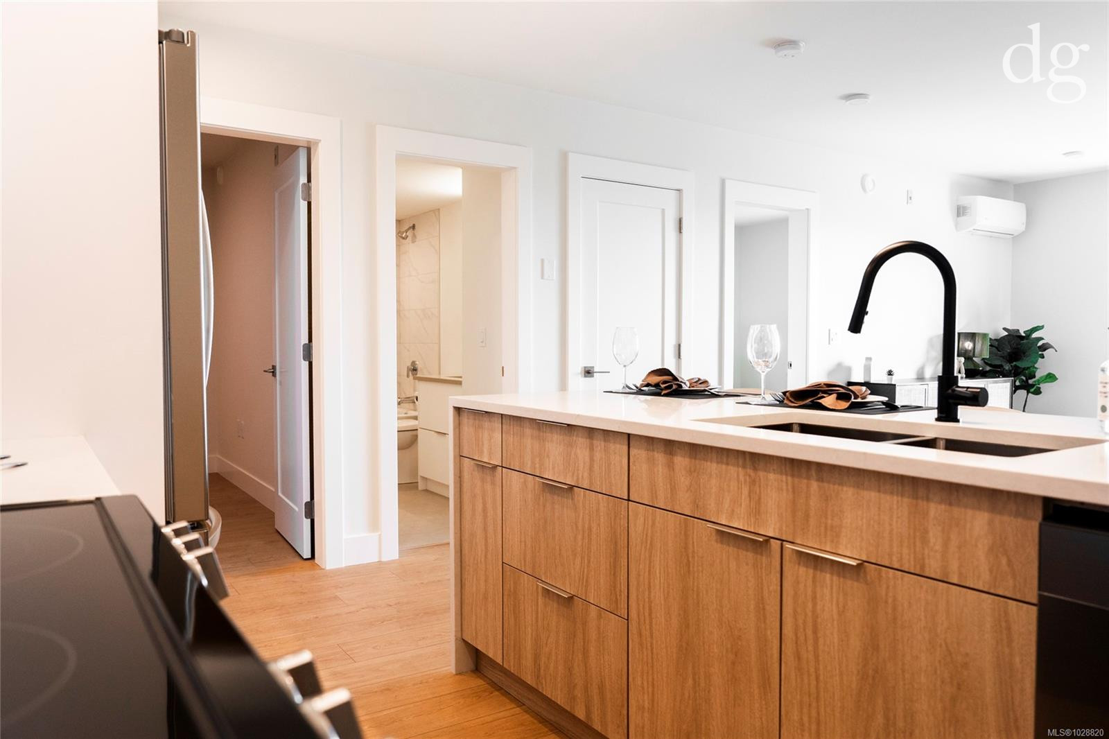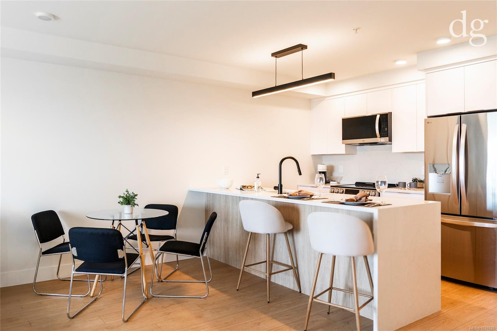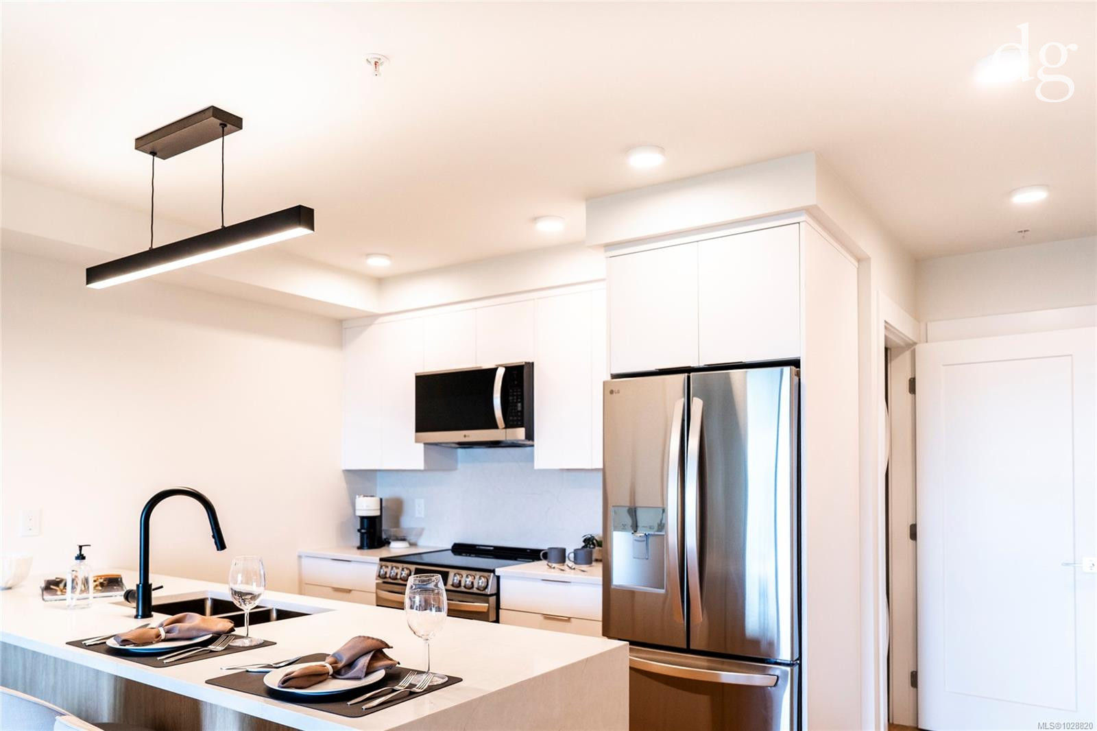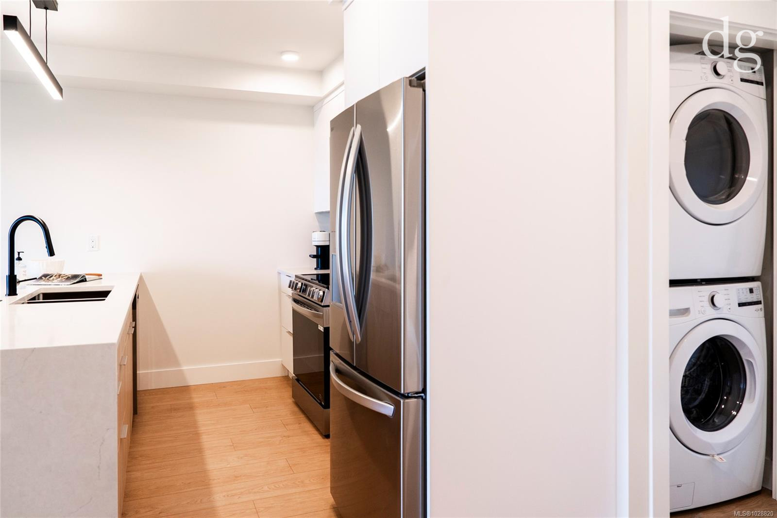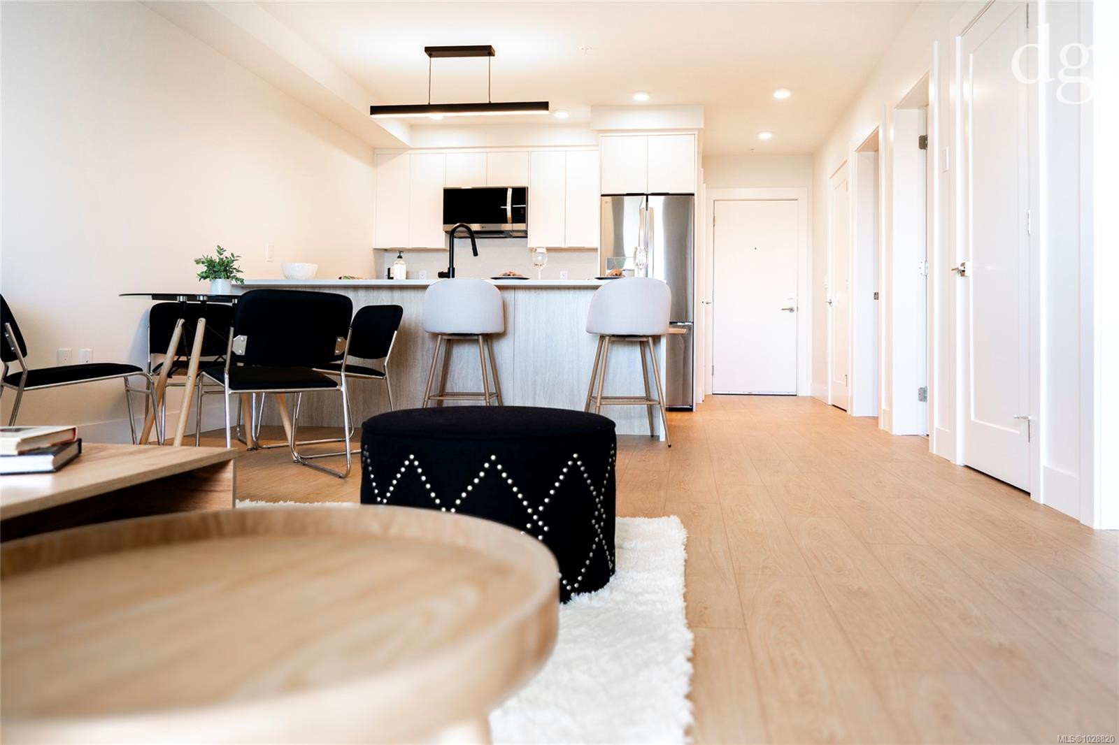 Welcome to Lumina in Harborview District, another principal property community in the heart of downtown Nanaimo, where city living meets coastal charm. Steps from the harbourfront, seawall, cafés, shops, parks, and Hullo Ferries, Lumina places you in the center of a growing, evolving district. Enjoy your mornings on the rooftop patio surrounded by lush greenspace and expansive ocean views. This beautifully designed 2-bedroom, 1-bath home features bright, open living with views of the harbour, city, and mountains — a striking blend of coastal beauty and urban energy. The kitchen stands out with waterfall-edge countertops, sleek cabinetry, and contemporary lighting, all contributing to a clean, modern aesthetic. Whether it’s a stroll along the waterfront, coffee with friends, or a rooftop sunset, this home connects you to the best of downtown — and the exciting future unfolding around it.