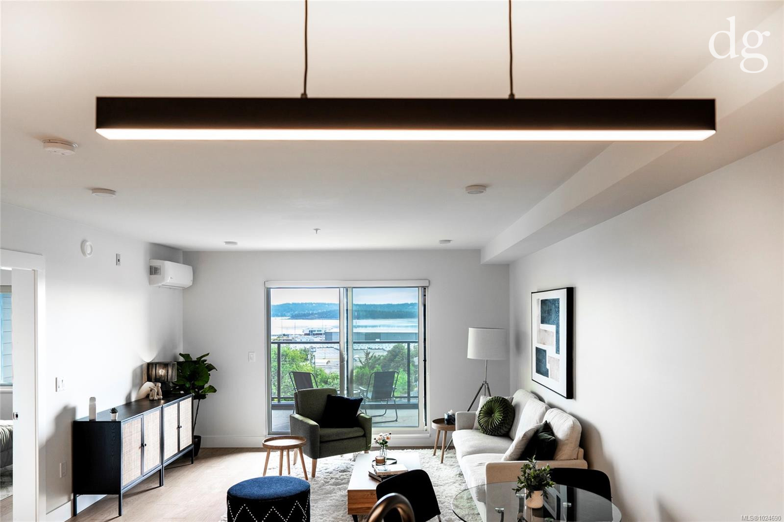 Welcome to Lumina, in the heart of Nanaimo’s Harbourview District — a Principal Property community where modern living meets coastal charm. Just steps from the harbourfront, seawall, cafés, shops, parks, and the Hullo Ferries, Lumina places you at the center of a vibrant, evolving neighborhood. This lovely residence offers a refined blend of style and comfort, featuring bright open-concept living, high-end finishes, and a spacious balcony with sweeping city and harbour views. Every element — from the quartz waterfall countertops and smart appliances to the soft-close cabinetry — reflects thoughtful design and attention to detail. Residents also enjoy access to Lumina’s stunning rooftop terrace — an elevated retreat with panoramic harbour and mountain views, perfect for morning coffee or sunset gatherings. Blending the best of coastal urban living, this home is more than a place to live, it’s a front-row seat to downtown Nanaimo’s vibrant future.