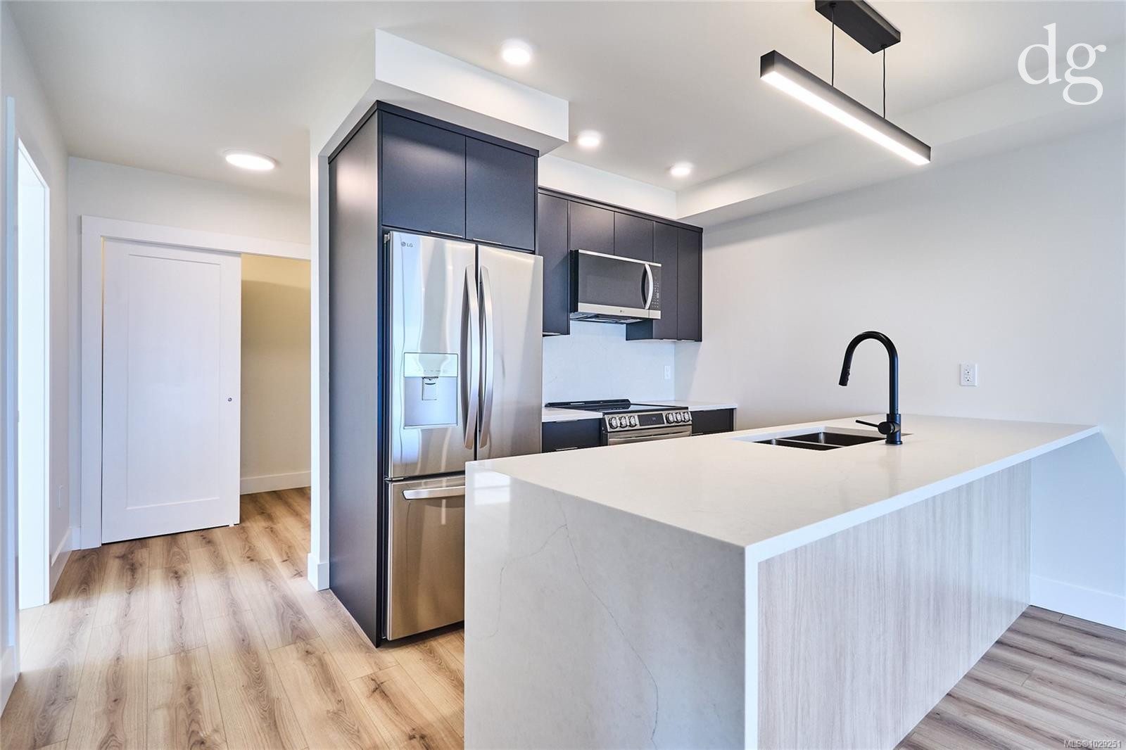Welcome to Lumina, in the heart of Nanaimo’s Harbourview District — a Principal Property community where modern living meets coastal charm. Just steps from the harbourfront, seawall, cafés, shops, parks, and the Hullo Ferries, Lumina places you at the center of a vibrant, evolving neighborhood. This lovely residence offers a refined blend of style and comfort, featuring bright open-concept living, high-end finishes, and a spacious balcony with sweeping city and harbour views. Every element — from the quartz waterfall countertops and smart appliances to the soft-close cabinetry — reflects thoughtful design and attention to detail. Residents also enjoy access to Lumina’s stunning rooftop terrace — an elevated retreat with panoramic harbour and mountain views, perfect for morning coffee or sunset gatherings. Blending the best of coastal urban living, this home is more than a place to live, it’s a front-row seat to downtown Nanaimo’s vibrant future.