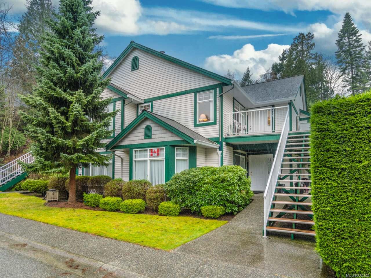 Floral Woods development, great location off Hammond Bay Road in popular Rocky Point area. This immaculate 2 bedroom 2 bathroom townhome shows like new. Many extra features including spacious living room with vaulted ceiling & attractive gas fireplace. Bright open kitchen with stainless appliances, movable island with eating bar. Den/dining area is open to the living room and kitchen giving you more open space. Patio doors off this room to a side patio. Nice size master bedroom that will accommodate a king size bed with plenty of room to spare. Convenient ensuite & walk in closet. There is a large, private wrap around deck with a patio storage container. Beautiful green space with walking trails. Popular North Nanaimo area, very central, close to everything. Plenty of updates including new quality flooring. Visitor parking right out the front door.