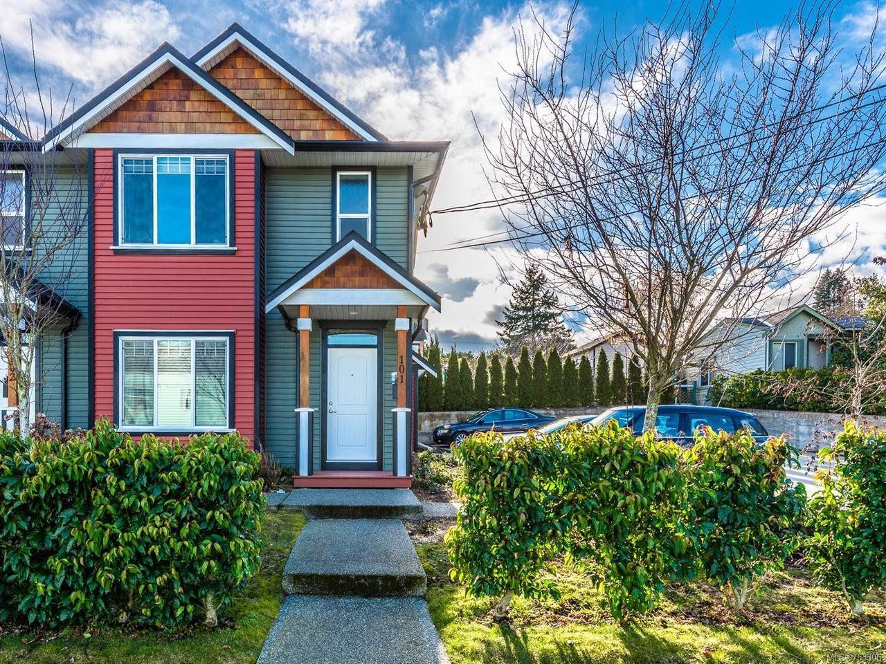 Bright & beautiful 3 bedroom townhouse -Old City Quarter-a rare opportunity! Spacious, modern 3 bed/3 bath townhouse in the vibrant heart of Nanaimo’s Old City Quarter. Stroll to all amenities, including cafes, restaurants, parks, groceries, public library, waterfront and Pauline Haarer School (french immersion)! Just 3 years old, w/ 7yrs left on New Home Warranty, this architecturally designed end unit home mixes Old City character w/ the conveniences of a new home. At 1,324 sq ft, this is a terrific home for a family or a professional couple looking for a little extra space. The home features open concept living w/ hardwood flooring & warm interior paint colours. The kitchen incl. stainless steel appliances, an island, plenty of counter space & a french door leading to the warm south facing back patio, perfect for your patio set & bbq. There is plenty of storage inside & a large storage shed outside too.