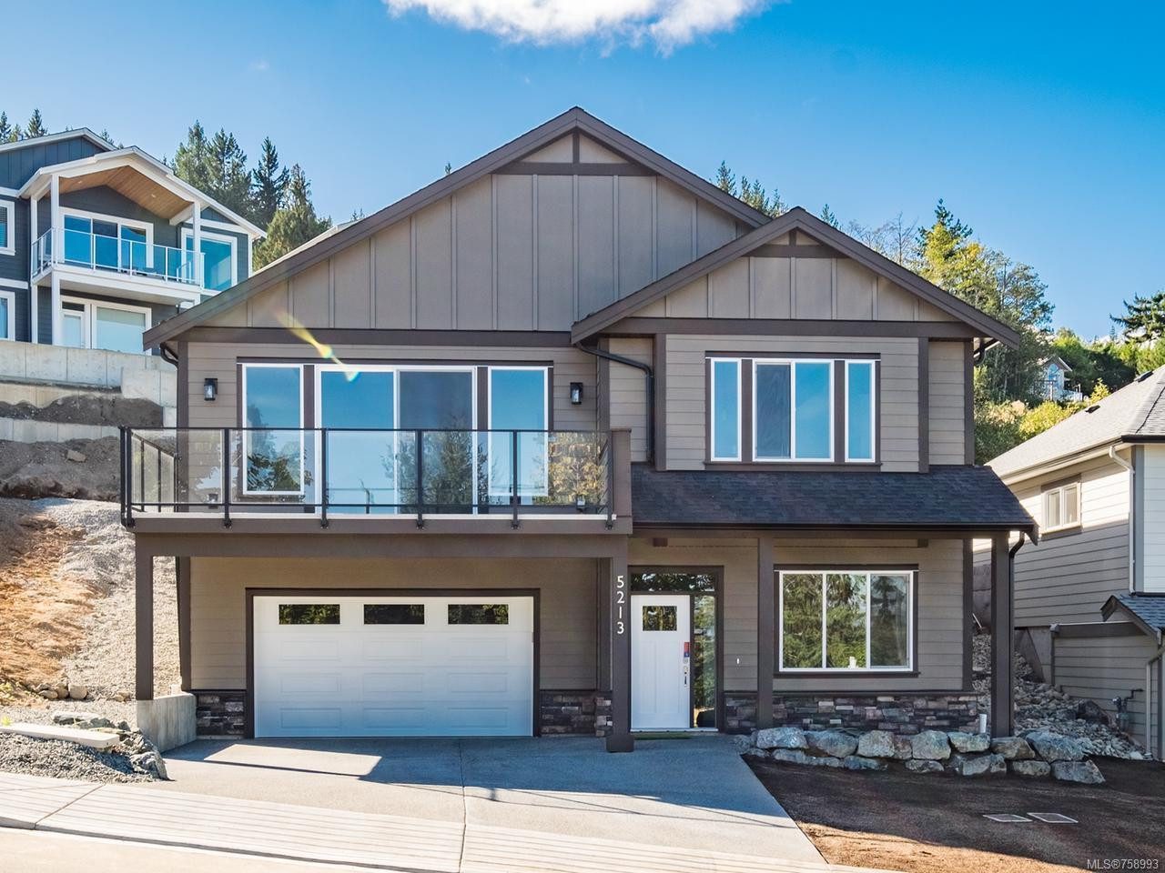 Executive Ocean view, three bedroom custom built home. Views of the mountains and ocean, including sunsets over the Winchelsea Islands from the main floor. This home offers top quality custom finishing throughout. Located in the desirable North Nanaimo neighbourhood. The second level has the Living Room, Dining Room and Kitchen open plan design facing the Ocean views. Granite counter tops, 7 foot granite island with soft close drawers. Master bedroom with walk in closet high-end closet organizers. En-suite bathroom with walk-in shower with matching granite seat, double sinks w/ Granite counters with heated tile flooring. Second bedroom has walk in closet. Two linen closets. Ground floor entrance with den or office at front of the house with the third bedroom and family room. Three piece bathroom with Granite counter tops. Spacious laundry room on ground level with a large finished storage room. Fully finished Double garage. Landscaped. High-efficiency gas furnace. Price plus GST.
