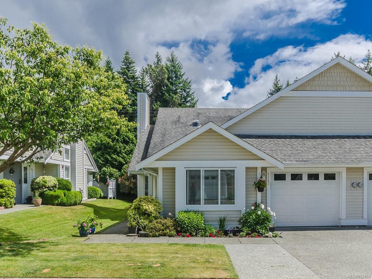 Hidden Gem in this complex in Nanaimo, from the well maintained property to the beautiful unit, you will be pleased to own this lovely home. The living room with its 14′ vaulted ceiling is home to a Napoleon gas fireplace, while the dining room can easily accommodate a full size buffet with large dining room table. The sun shines through the windows making this home bright and cheery even on the rainiest days. The separate kitchen with its eating nook has plenty of cupboards and a door leading to the back patio. Your morning coffee can either be enjoyed in the nook overlooking the patio, or on warm sunny days, the patio is private and welcoming. Both bedrooms are good sized with ensuites. There is a single car garage and here you will find a super storage room over the garage that can be accessed by the easy-pull stairs. Pets are allowed and the complex has a 40+ age restriction. Sorry, no rentals are allowed. Walk to all conveniences. Easy to show and a joy to own!!