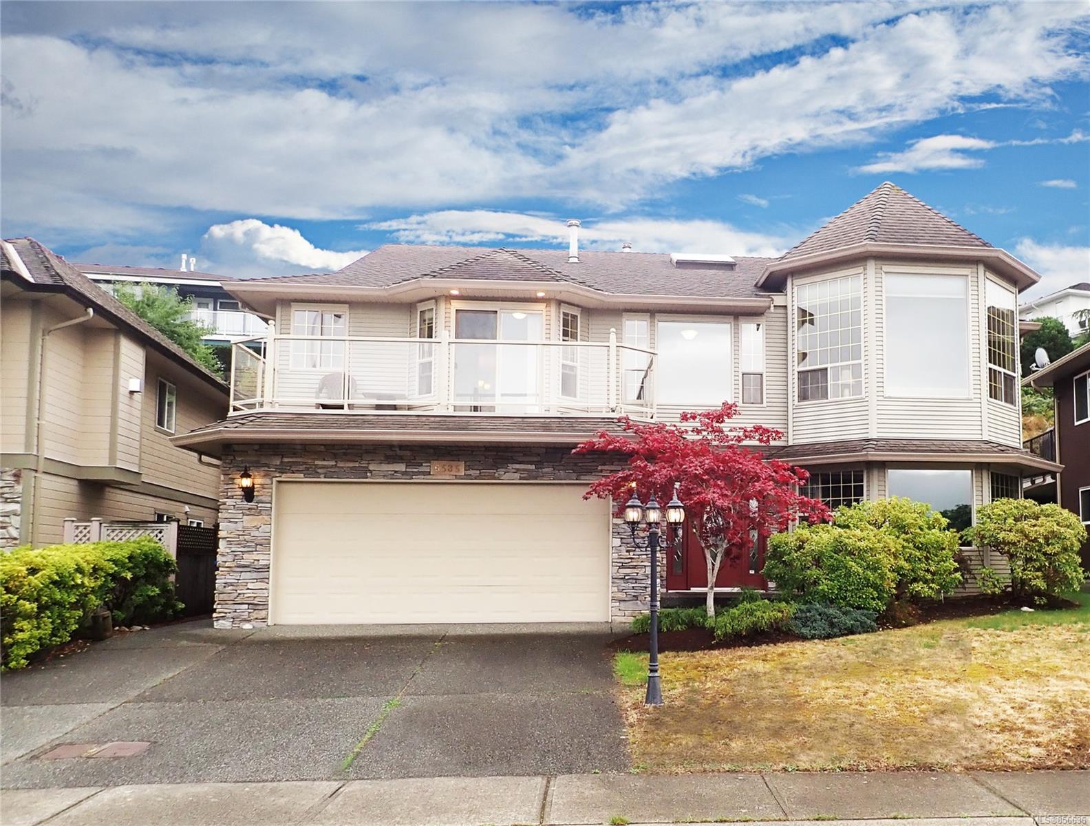 Just move right in to this spacious home with ocean views overlooking the Winchelsea Islands. Located in one of the most popular areas of North Nanaimo, this 5 bdrm plus den, 3 bath home offers a thoughtfully designed floorplan that is both open & airy, yet cozy & livable. Large windows oriented towards the views allow for plenty of natural light. The spacious kitchen boasts granite counters, plenty of storage & counter space with an island & large eating bar. Entertain in the dining room w/ modern gas fireplace or the formal living w/ second gas fireplace. The spacious master bdrm features a well-appointed 4pc ensuite w/ large walk-in closet. The lower level has a huge family room w/ yard access, 2 bdrms, large den, 4 pc. bath & provides an opportunity to customize this home to include a suite. The fully fenced south-facing backyard is complimented with a sprinkler system, fire pit & mature landscaping.
