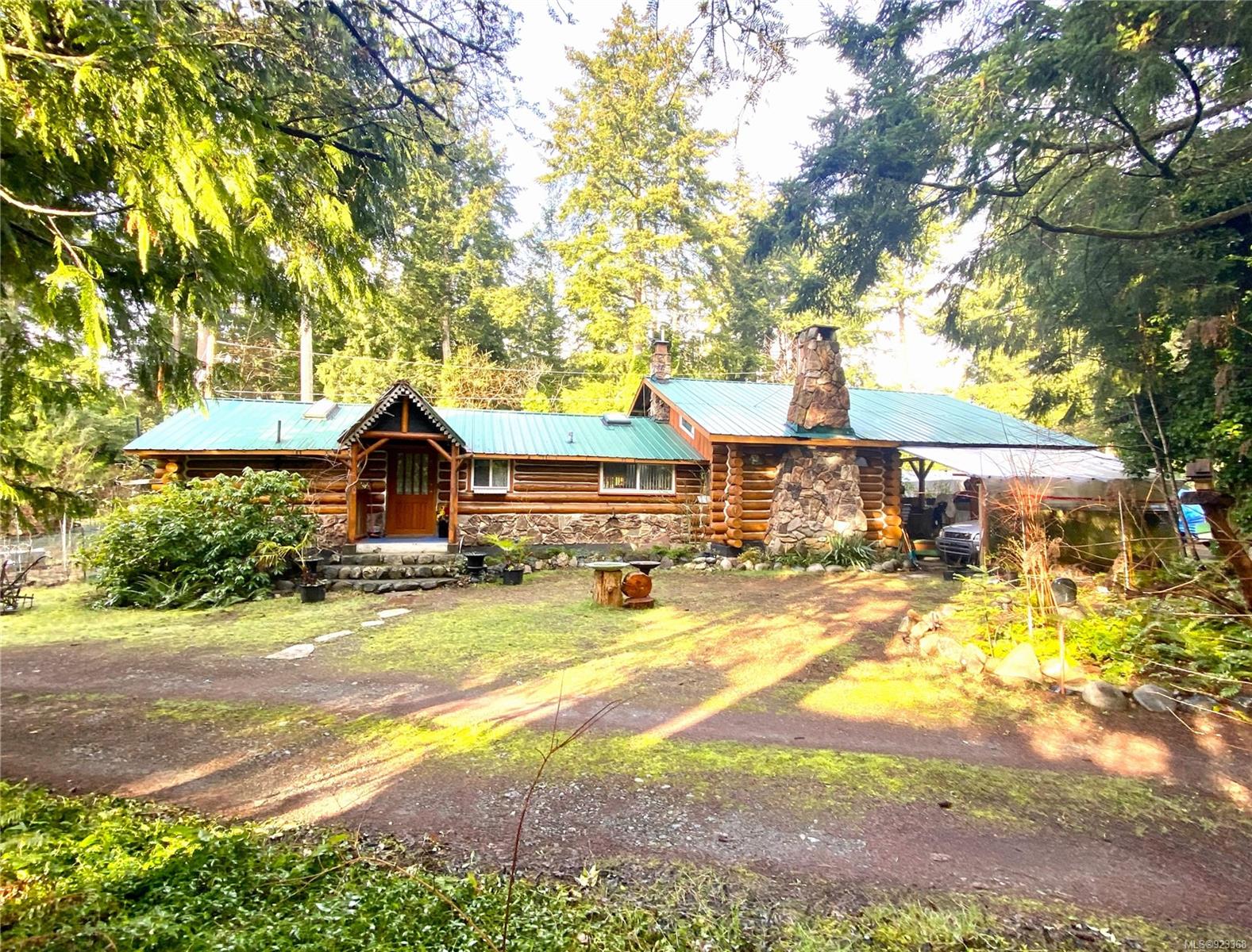 Charming log home with massive 819sqft shop on a sprawling flat .69-acre lot in Upper Lantzville with city water and sewer. This unique property offers long term development potential as the official community plan is Neighborhood designation, carriage house ability and/or expand on the existing home (Buyer to verify themselves with the city). The 2 bedroom home has 2 full bathrooms including an en-suite off the primary bedroom and has a loft that could be used for a den or a multitude of uses. There is a huge vaulted/covered sitting area off the exterior to entertain and the property has a variety of mature trees, flowers, shrubs and more that can all be watered off a natural spring on the land. This is the last home on city services on the road and offers current and future value. With lots of charm and an expansive shop this property could be utilized for a variety ideas. All data and measurements are approximate and should be verified by a buyer if deemed important.