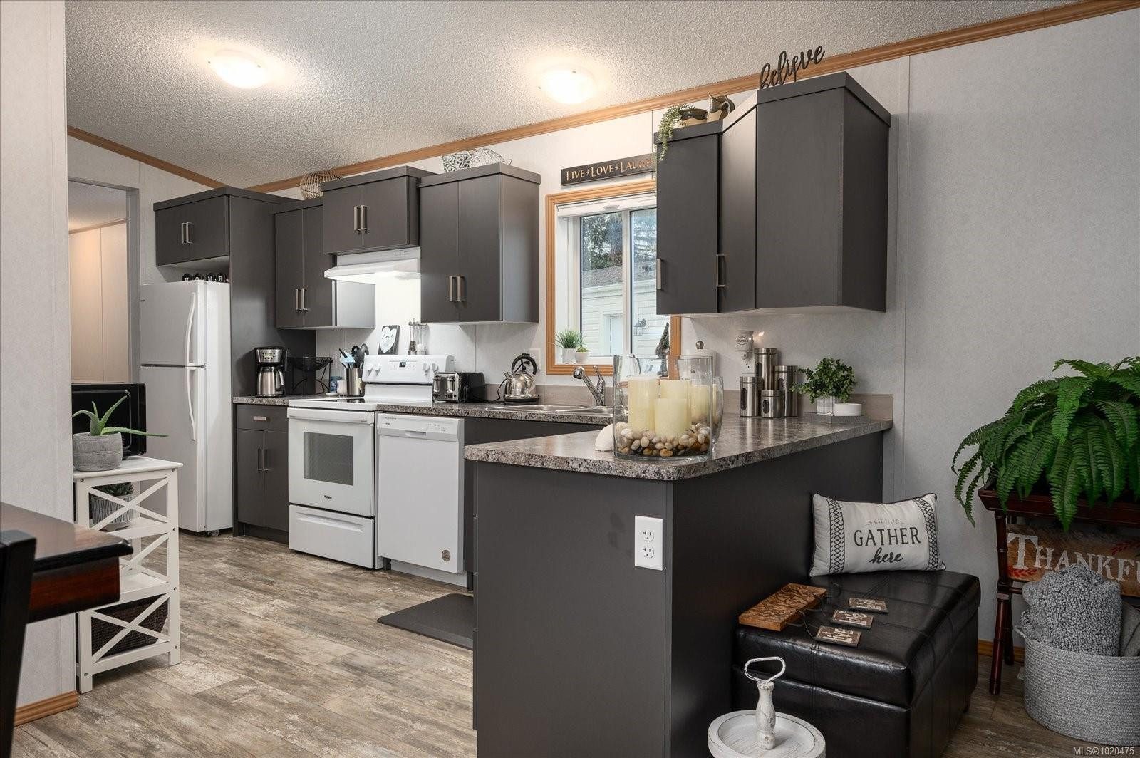 I have found it! Looking to retire? Or just looking to downsize? Then do not miss this almost new 944 sq ft 2 bedroom 2 bath manufactured home. It is a very open plan with vaulted ceilings, large kitchen with many cabinets, build in pantry, eating bar or kitchen work station, double sinks, blinds for the windows and a separate laundry room with full size side by side washer and dryer as well as extra storage. Primary bedroom has 4 piece ensuite ,walk in closet and even a distance view of the ocean and coastal mountains. Separate storage shed outside is perfect for all your tools weed eater etc. Two small decks for each door access are a plus. This home is located in Parklands Mobile Home Park, a well managed 55+ park in ever popular Lantzville. It is approximately a 10 minutes drive to the village, desirable beaches, Winchelsea golf course, and North Nanaimo shopping. Pet friendly with restrictions. It is a must to see.