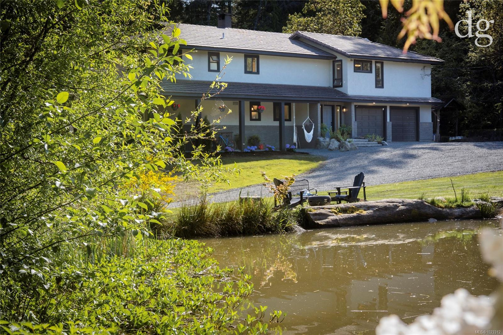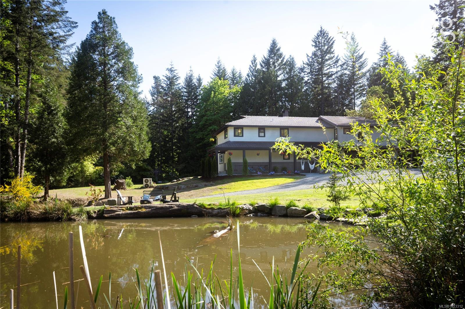 Tucked into a forested enclave just steps from Brennan Lake, this beautiful residence is a west coast retreat set on an expansive acreage with its own private pond, the property invites stillness and connection — whether you’re enjoying morning coffee beneath the trees or unwinding fireside at dusk. Inside, the home blends a cozy comfort with modern design, anchored by a showpiece kitchen. A marble waterfall island with barstool seating catches attention and an additional highlight of a glass-doored wine storage. At the heart of the living room, a stone-wrapped wood-burning fireplace sets a warm, welcoming tone. In the next room there’s a large sunroom connecting to the outdoors through French doors, opening onto a patio and yard — great for a volleyball net, gardening, or simply soaking in the sun. Upstairs for added privacy are four bedrooms, one with a charming European-style balcony with room for a bistro set, and the spacious primary suite with a large walk-in closet and ensuite. The property has the potential to be divided into 5 acres parcels and then the possibility to strata the remaining into 2.5 acres. Please verify with the regional district. back of property backing onto an endless forest.
