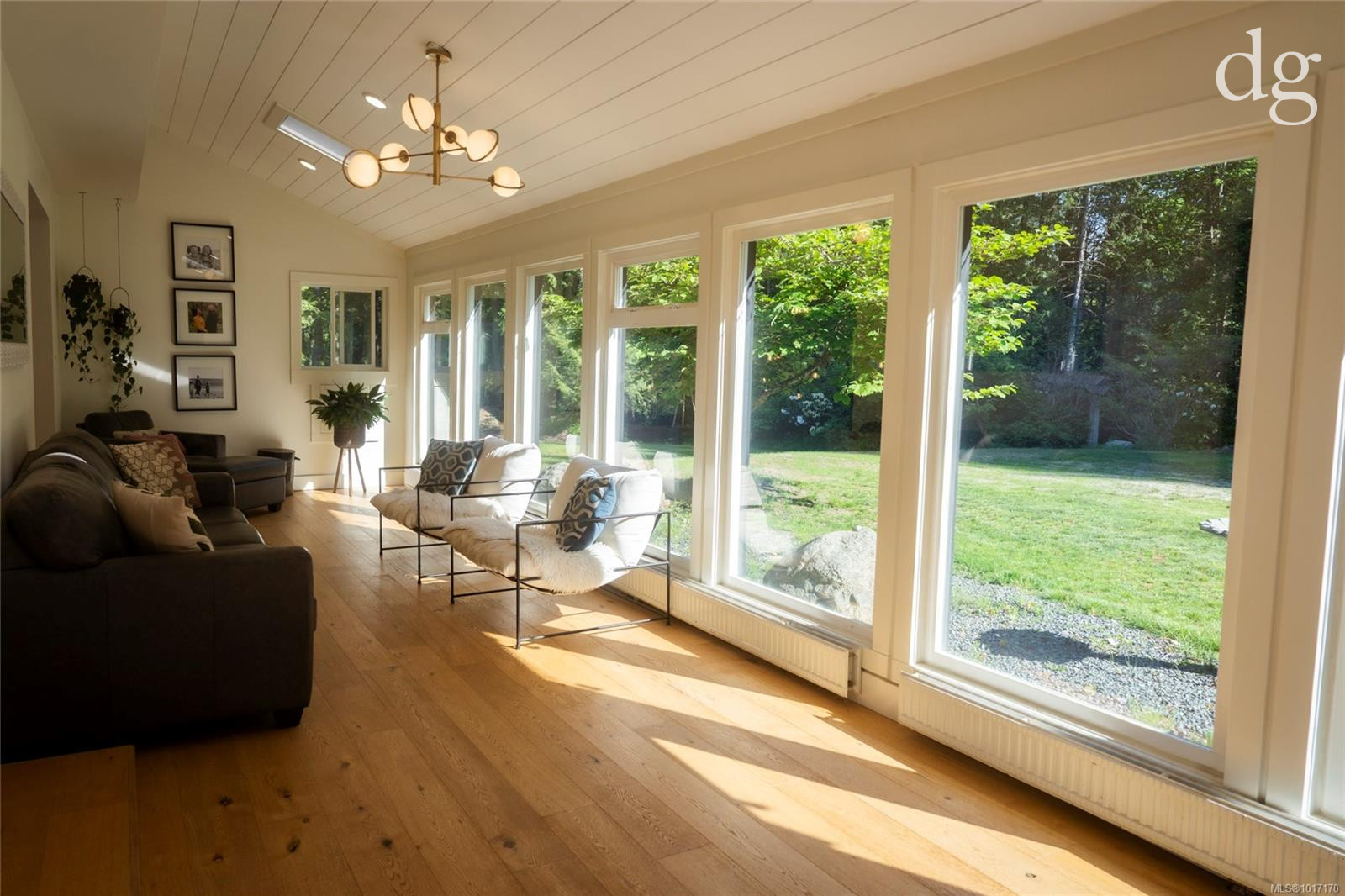 Tucked into a forested enclave just steps from Brennan Lake, this beautiful residence is a west coast retreat set on an expansive acreage with its own private pond, the property invites stillness and connection — whether you’re enjoying morning coffee beneath the trees or unwinding fireside at dusk. Inside, the home blends a cozy comfort with modern design, anchored by a showpiece kitchen. A marble waterfall island with barstool seating catches attention and an additional highlight of a glass-doored wine storage. At the heart of the living room, a stone-wrapped wood-burning fireplace sets a warm, welcoming tone. In the next room there’s a large sunroom connecting to the outdoors through French doors, opening onto a patio and yard — great for a volleyball net, gardening, or simply soaking in the sun. Upstairs for added privacy are four bedrooms, one with a charming European-style balcony with room for a bistro set, and the spacious primary suite with a large walk-in closet and ensuite. The property has the potential to be divided into 5 acres parcels and then the possibility to strata the remaining into 2.5 acres. Please verify with the regional district. back of property backing onto an endless forest.