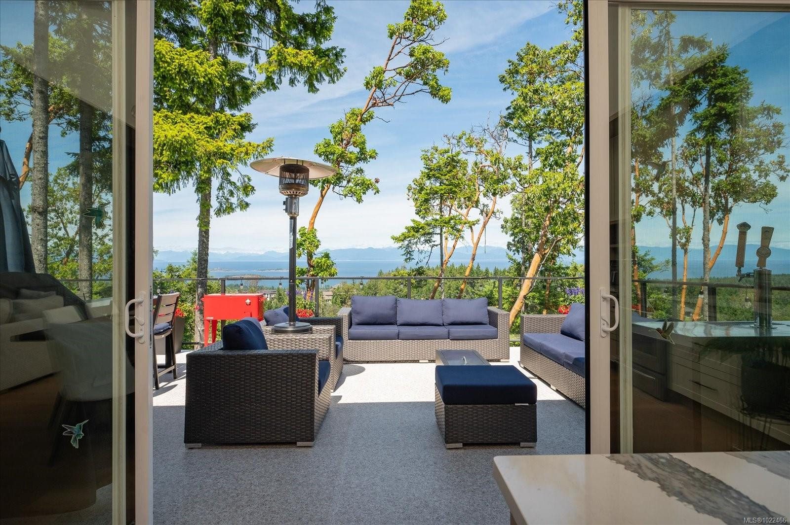 Discover this stunning 2,475 sq ft custom home in the prestigious Lantzville Foothillsāoffering privacy, tranquility, and spectacular Winchelsea Island views with no neighbours in front or behind. Step inside to soaring vaulted ceilings with exposed beams, shiplap detail, and a wall of windows framing arbutus trees and panoramic vistas. The open-concept main floor features a spacious great room with gas fireplace, a dining area, and a gourmet kitchen with a large island and Frigidaire Professional appliances. Step out onto the expansive 37×14 deckāperfect for outdoor dining and entertaining. The main level also includes a luxurious primary suite with spa-inspired ensuite and walk-in closet, plus two additional bedrooms. Above the garage, a nearly 500 sq ft bonus room with its own bathroom offers flexible space for a gym, office, guest suite or media room. Enjoy year-round comfort with the recently added heat pump providing efficient air conditioning. Bonus large crawlspace for storage.