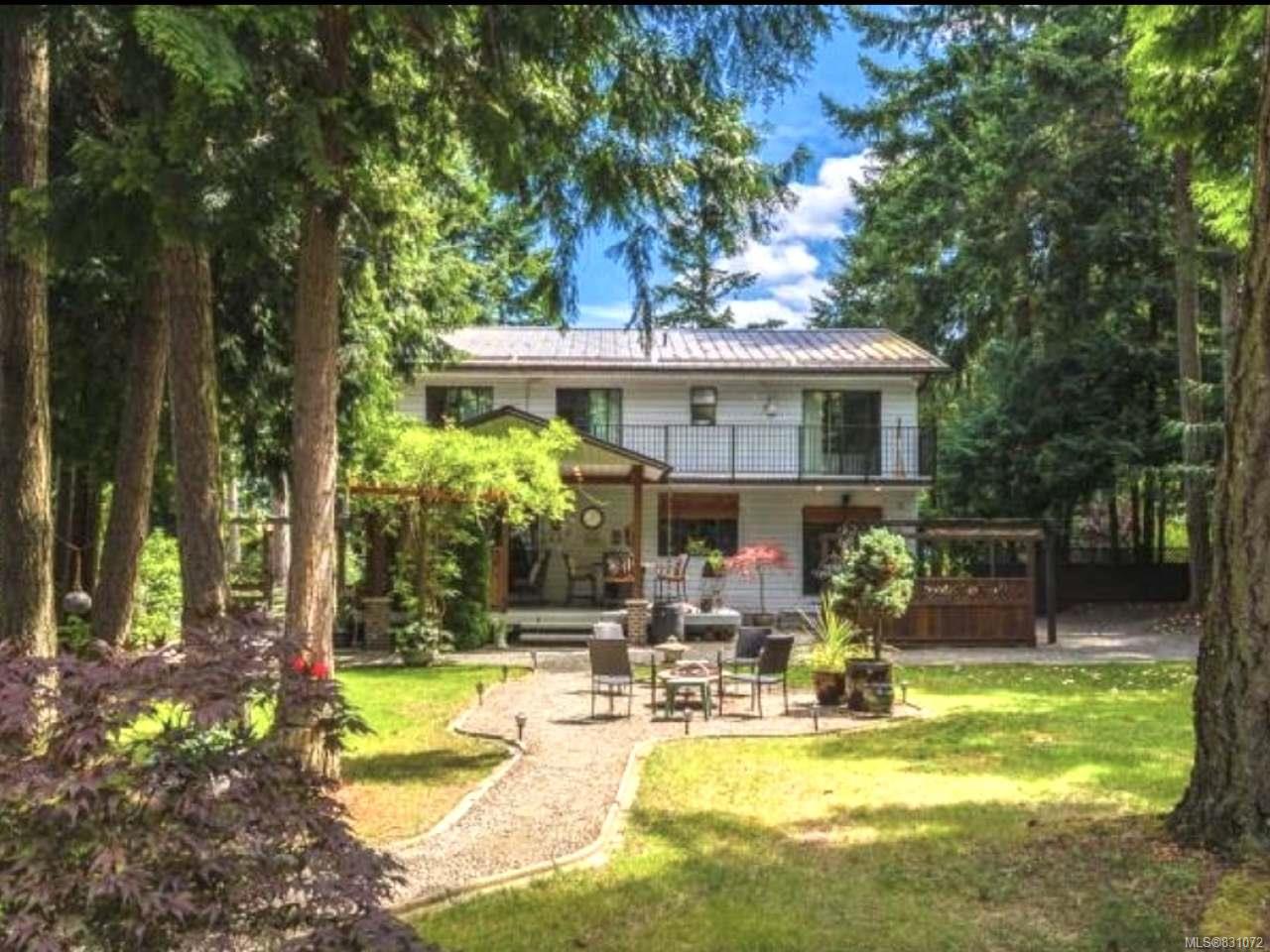 This charming 1985 sqft, 3 bedroom Westcoast style home is situated on a pristine park like property in upper Lantzville on over 1/2 acre. Through gated driveway to the entrance is level fully fenced yard w/sprinkler system. The rear property offers a 792 sqft heated shop w/9 ft ceiling. The large open living area has hardwood floors, huge 19 ft ceiling & updated fireplace w/thermostat & remote. Off the living room is a dining room w/access to rear covered deck. The beautifully updated kitchen has new back splash & granite counter tops. The family room has a Pacific Energy wood stove & access to the covered deck. There is also a powder room, mud room & laundry area. An open newly updated staircase w/custom railings leads to the upper level hall with new 3/4″ hardwood flooring, overlooking the living area. Master suite has a W/I closet & 3 pc ensuite. All 3 bedrooms have back deck access. Large den, another 3 pc bathroom w/new tile, B/I vac, fresh new paint, furnace & RV parking.