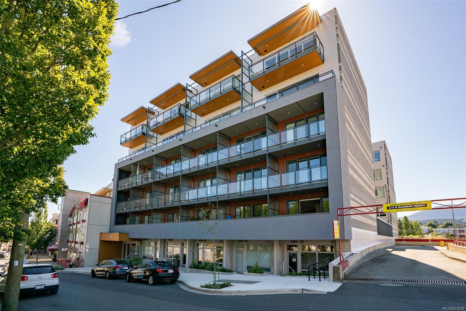 Tastefully appointed, newer home set in one of Nanaimo’s newest strata properties. With 659sf, 1 bedroom with ensuite and walk in closet, covered balcony, functional and bright main living space, this classy home offers many features: island kitchen with quartz waterfall breakfast bar, Grohe faucet, 4 quality appliances, 15’5”x11’ living room and dining area. The living room boasts a floor to ceiling fireplace with wood grain fascia, linear electric fireplace, and media install, and a backdrop featuring some ocean and city view. In unit laundry, underground parking, bike/paddle board storage, and storage locker add to your amenities. The setting offers a modern-design with common courtyard exuding an exciting, contemporary lifestyle; you are steps to many family-owned restaurants, shops, transportation, and of course Nanaimo’s amazing waterfront promenade/parks. Walk to air commute to Vanc. Strata $148/m, rentals ok. All measurements are approximate & should be verified if important.