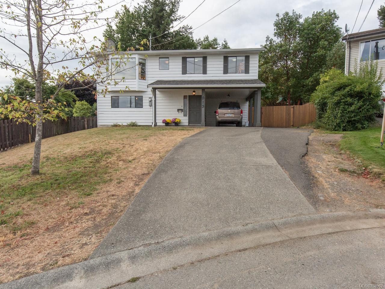 Tucked away on a quiet cul-de-sac in a family-friendly neighbourhood, this 3-bedroom, 2-bathroom home offers comfort, versatility, and future potential. The bright main level features an open-concept layout with laminate flooring, an updated bathroom, and a spacious kitchen that flows into the dining and living areas. Step through sliding doors to a large deck overlooking a private, fully fenced backyard with mature trees and sunny southern exposure – perfect for relaxing or entertaining. The unfinished basement with rough-in plumbing provides an excellent opportunity to expand your living space or add a suite. Additional highlights include RV parking, distant ocean and mountain views, a newer furnace, hot water tank, A/C and new windows in 2024. Conveniently located near schools, parks, and shopping.